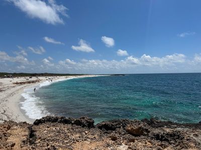 La playa cuenta con estacionamiento, puestos de refrigerios y área de camping, con acceso directo a las aguas cristalinas.