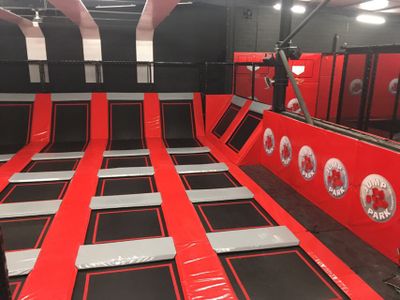 El complejo de 1600 metros cuadrados cuenta con múltiples zonas de trampolines, recorridos de obstáculos, canchas de baloncesto y áreas especializadas de salto.