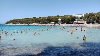 La playa Slanica presenta una combinación de guijarros y arena que se extiende por 500 metros de costa mediterránea con aguas azules cristalinas.