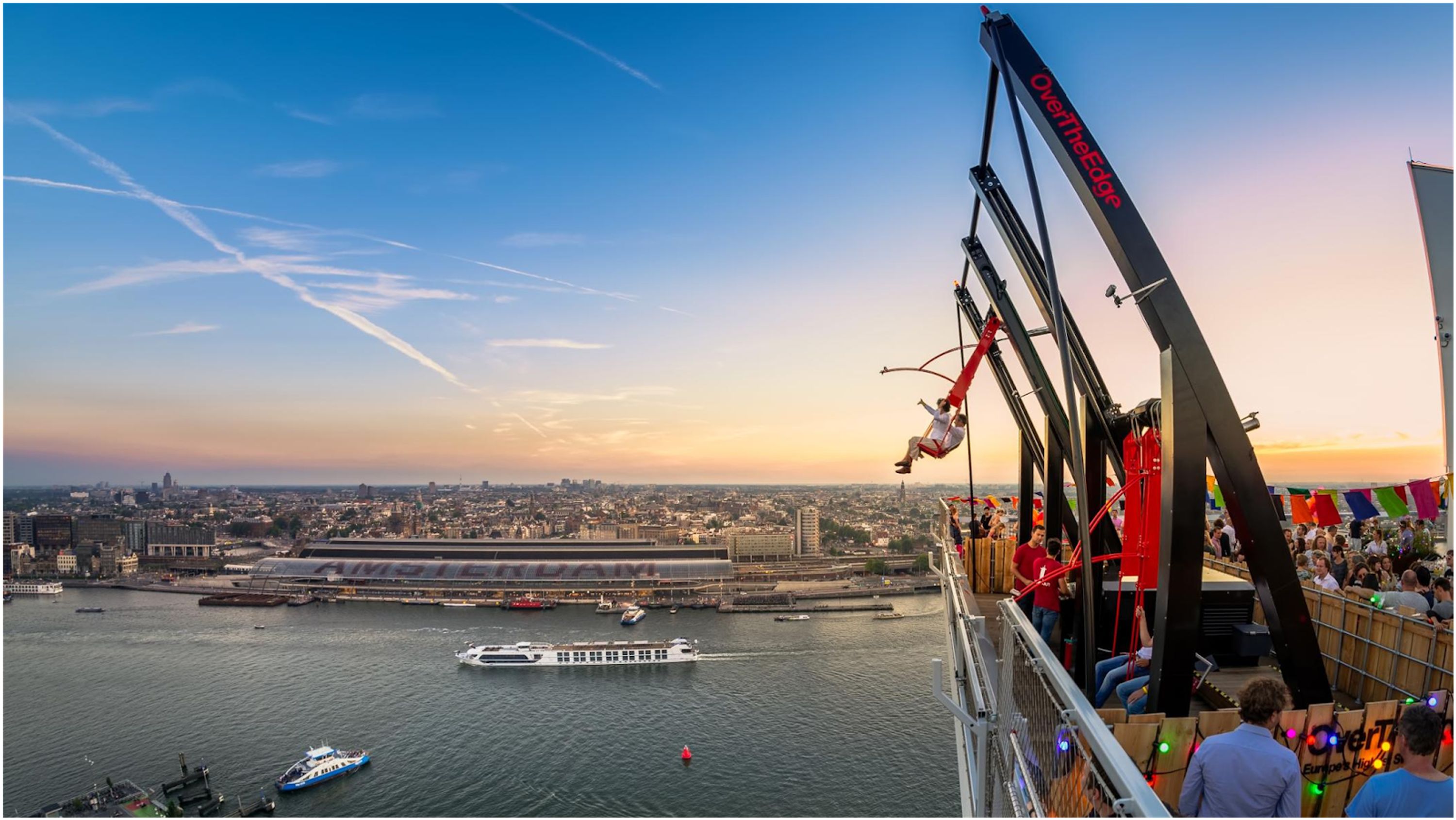 La Torre A'DAM se eleva 100 metros sobre el río IJ, con una plataforma de observación que ofrece vistas del puerto, los canales y el centro histórico.