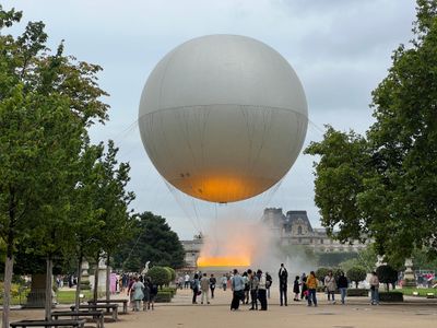 El pebetero olímpico 2024 presenta un anillo de 7 metros de diámetro suspendido de un globo de helio a 30 metros sobre el jardín.