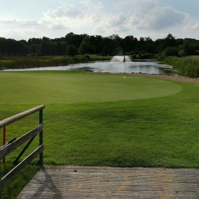 El campo de golf Mecklenburg-Vorpommern-Platzes se extiende por un terreno ondulado con 18 hoyos que integran elementos acuáticos y búnkeres distribuidos estratégicamente.