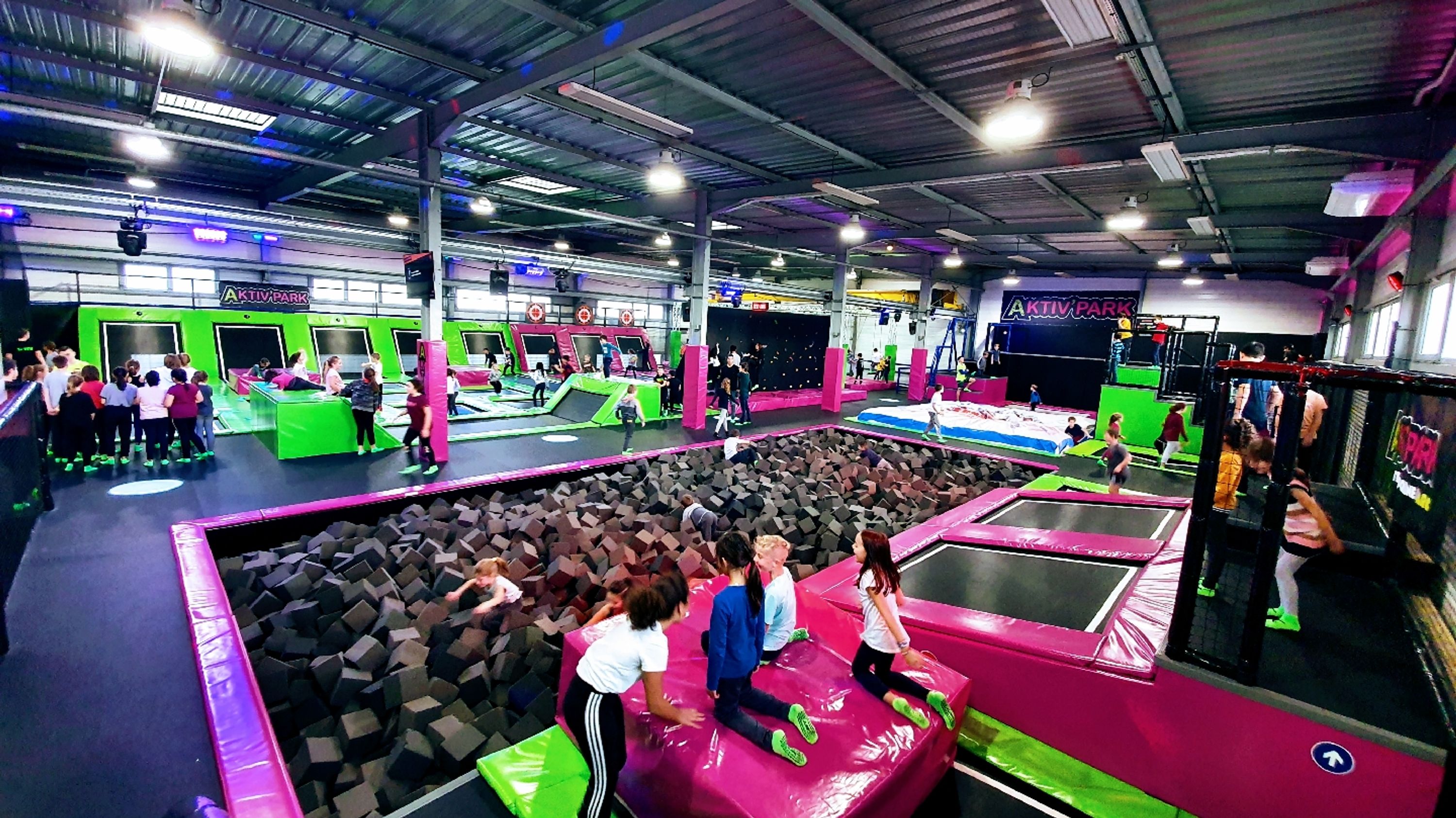 Situado en un edificio de 1.250 metros cuadrados, Aktiv'park cuenta con diez zonas especializadas que incluyen trampolines, muros de escalada, fosos de espuma y circuito ninja.