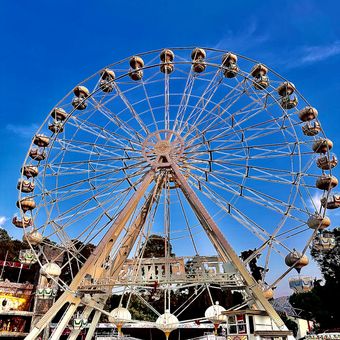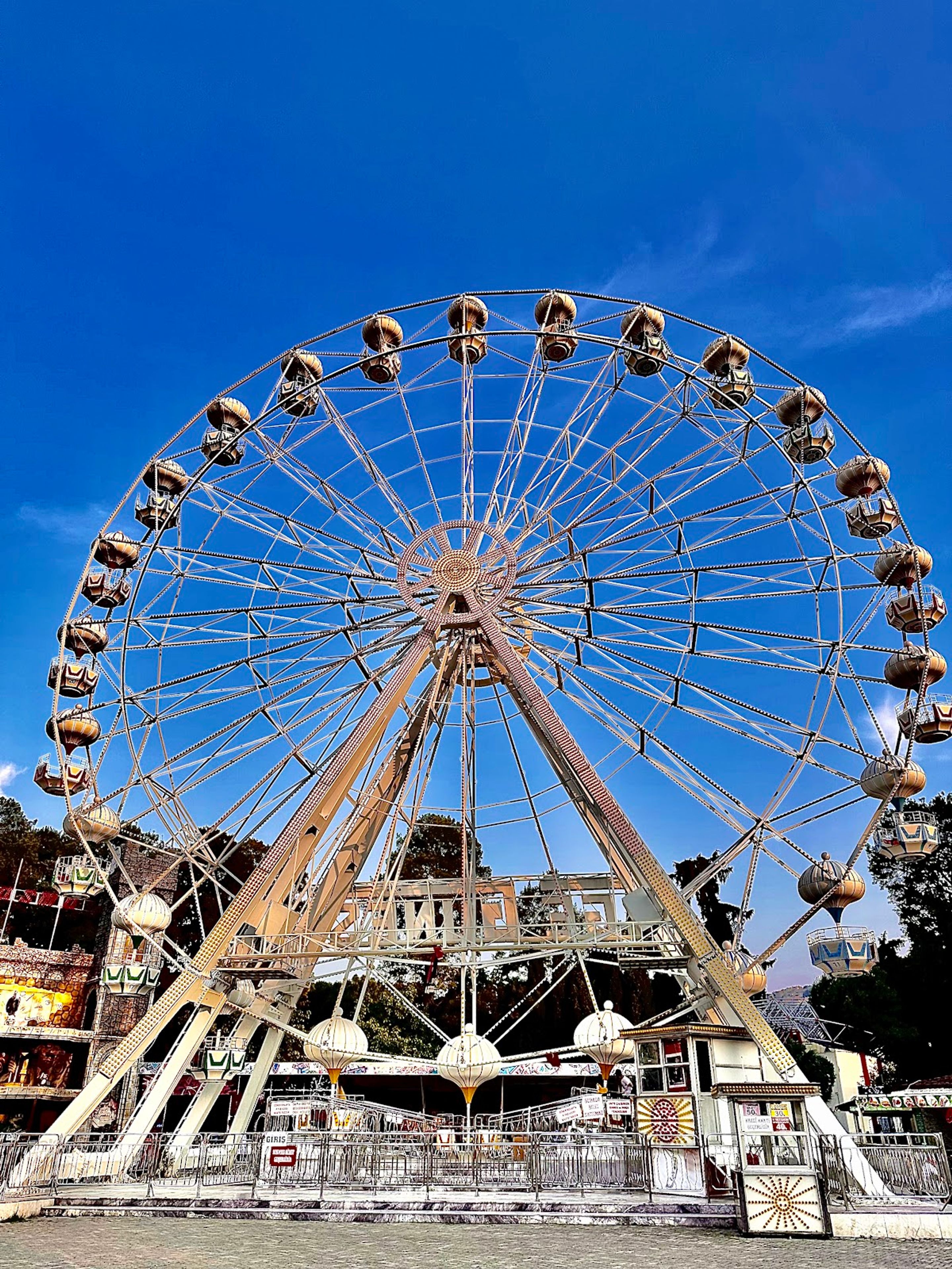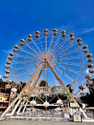 Lunapark abarca varias hectáreas con numerosas atracciones mecánicas, incluyendo una noria que ofrece vistas del vecindario circundante.