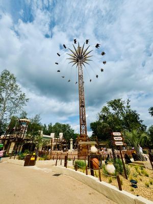La tour de Numérobis alcanza 40 metros de altura en el Parque Astérix, proporcionando vistas panorámicas de los paisajes galo y egipcio.