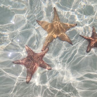 Los visitantes pueden llegar a Starfish Point mediante un viaje de una hora desde Seven Mile Beach o tours en barco combinados con excursiones a Stingray City.