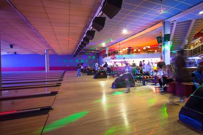 El Bowling du Stadium cuenta con 16 pistas de bolos fluorescentes y 4 mesas de billar distribuidas en un complejo de entretenimiento en Saint-Gratien.
