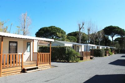 El camping cuenta con casas móviles especializadas adaptadas para viajeros con movilidad reducida, complementadas con instalaciones sanitarias específicas en todo el recinto.