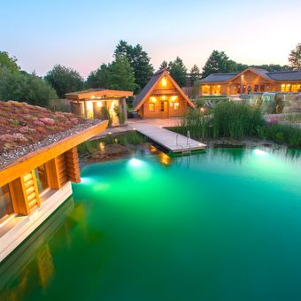 Las Termas Obermain abarcan 3000 metros cuadrados y cuentan con 25 piscinas cubiertas y al aire libre junto con un lago natural de baño, todas llenas de agua termal salada rica en minerales extraída desde 1600 metros de profundidad.