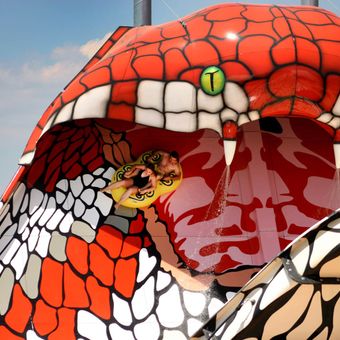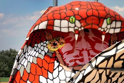 El tobogán King Cobra es el primero de su tipo en Grecia, con un diseño donde los usuarios se deslizan hacia la boca de una estructura de cobra.