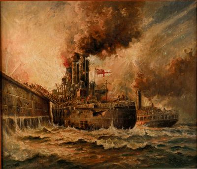 Las fuerzas británicas intentaron bloquear el acceso de submarinos alemanes al Mar del Norte hundiendo el HMS Vindictive en el canal del puerto en mayo de 1918.