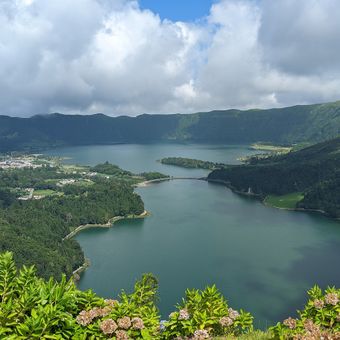 Este sitio ofrece vistas del único sistema de lagos bicolor dentro de una caldera volcánica en el Océano Atlántico.