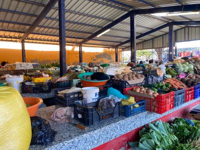 El edificio de dos plantas alberga numerosos puestos que ofrecen productos frescos, hierbas locales y diversos productos alimenticios de vendedores caboverdianos.