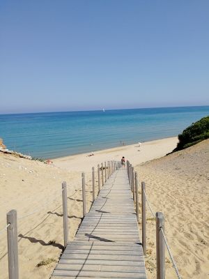 La playa se encuentra en la región de Costa Verde, que recibió su nombre por la densa vegetación mediterránea de las montañas circundantes.