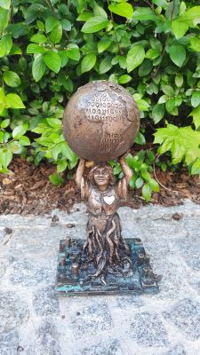 La estatua del enano lleva un libro especial publicado por TUM con un mapa que señala ubicaciones vinculadas a personalidades destacadas.