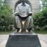 El monumento de bronce presenta a Tesla de pie con un bastón sobre un motor de corriente alterna, representando sus logros científicos.