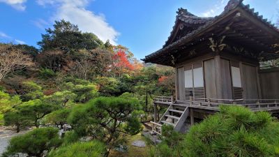 El actor Denjiro Okochi dedicó treinta años, desde 1928 hasta 1962, a desarrollar este jardín partiendo de un santuario budista básico.