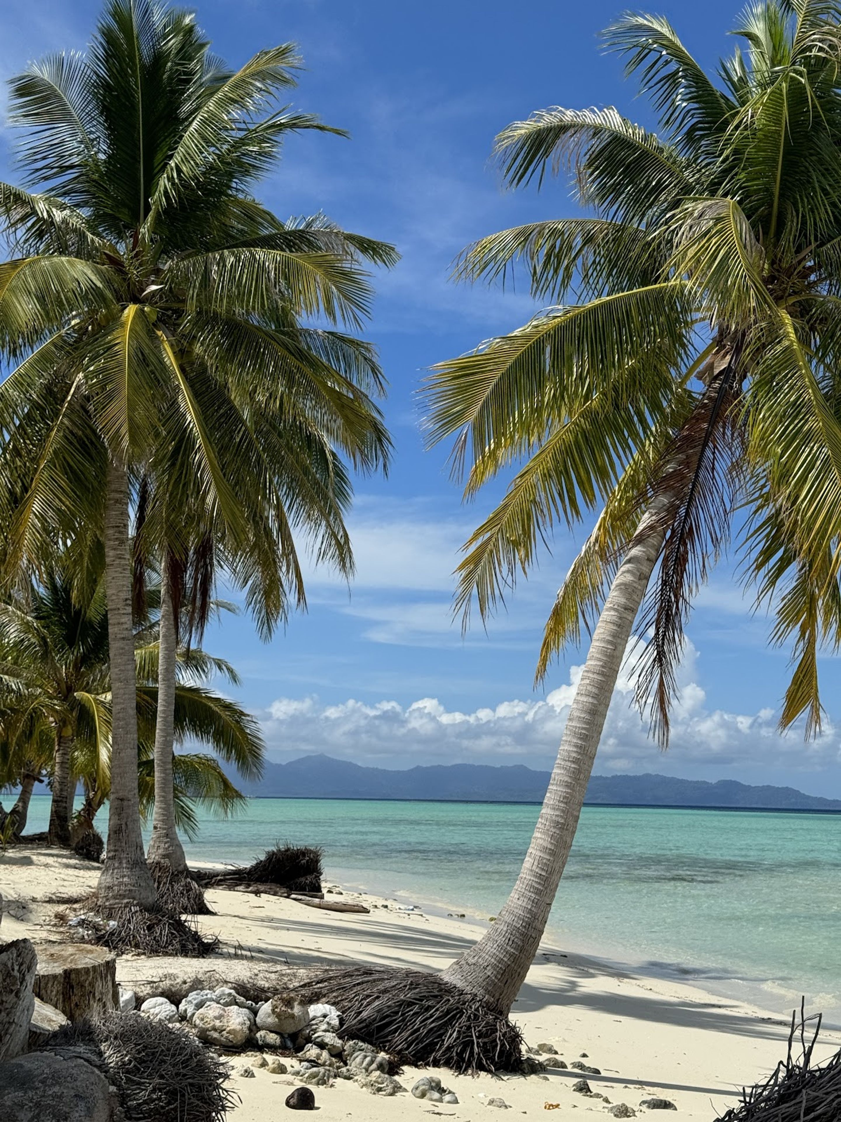Las aguas que rodean la isla Onuk contienen extensas formaciones de coral y almejas gigantes visibles desde embarcaciones tradicionales.