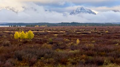 El Mirador Willow Flats ofrece vistas del lago Jackson, la cordillera Teton y extensos prados cubiertos de sauces.