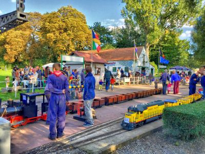 El Pequeño Tren de Vapor recorre una vía a través de la región de Forest, transportando pasajeros en réplicas miniatura de locomotoras tradicionales.