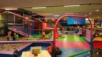 Den Deugeniet abarca más de 10.000 metros cuadrados con trampolines, fosos de espuma, toboganes y piscina de bolas para entretenimiento infantil.