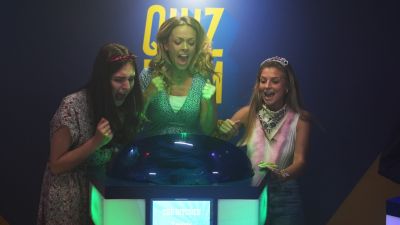 El local cuenta con pulsadores, focos y equipamiento tipo programa de televisión distribuidos en varias salas para competiciones entre equipos.