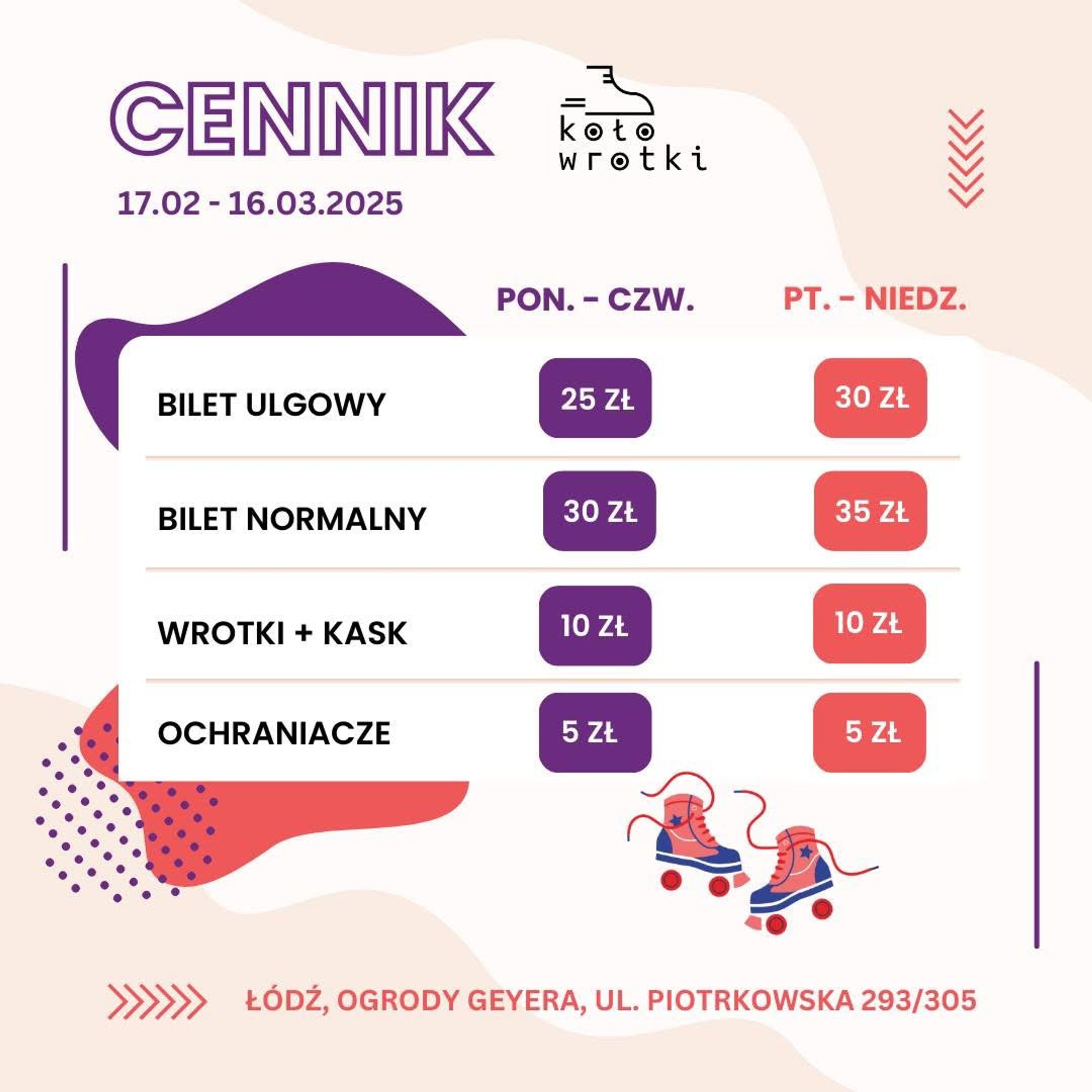 KołoWrotki ofrece una experiencia recreativa de patinaje sobre ruedas en un edificio industrial reconvertido ubicado en el centro de Łódź, proporcionando sesiones que suelen durar una hora y quince minutos para patinadores de todos los niveles.