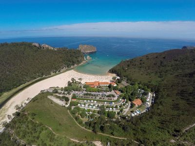 El camping permite observar osos pardos cantábricos en su hábitat natural mientras se permanece a minutos de las aguas costeras.