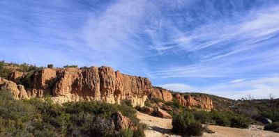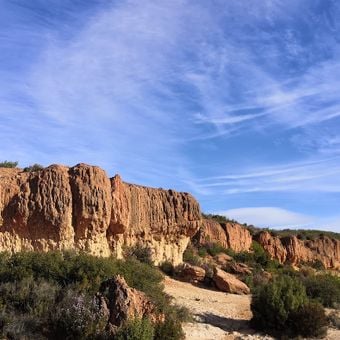 El paisaje circundante presenta rocas de ocre rojo y formaciones puntiagudas, por lo que los habitantes lo llaman el Arizona francés.