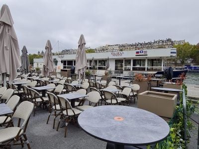 París cuenta con unas treinta embarcaciones y bares flotantes distribuidos a lo largo del Sena, Marne y canales. Estos establecimientos ofrecen espacios para comer junto al agua, a menudo acompañados de eventos musicales o culturales. Se encuentran diferentes tipos de lugares: barcazas convertidas en restaurantes, terrazas instaladas directamente sobre los muelles, establecimientos históricos en la orilla de Marne e incluso algunos accesibles solo en barco. Algunos llevan décadas en funcionamiento y están entre los barcos flotantes mejor valorados, otros han abierto recientemente para responder a la creciente demanda de espacios exteriores en la ciudad. La oferta es variada. Hay guinguettes tradicionales con música de bal musette, bares de cócteles en azoteas, restaurantes mediterráneos y lugares que combinan restauración con salas de espectáculo. La mayoría están concentrados en el interior de París, pero algunos se encuentran en suburbios cercanos, especialmente a lo largo de la Marne en Joinville-le-Pont y Champigny-sur-Marne. La mayoría operan principalmente en días soleados, aunque algunos permanecen abiertos todo el año con espacios interiores calefaccionados.
