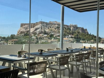 La ubicación en la azotea proporciona una vista sin obstrucciones de la Acrópolis que crea una experiencia gastronómica emocionalmente resonante, particularmente durante el atardecer cuando la silueta del monumento antiguo se ilumina contra el cielo nocturno.