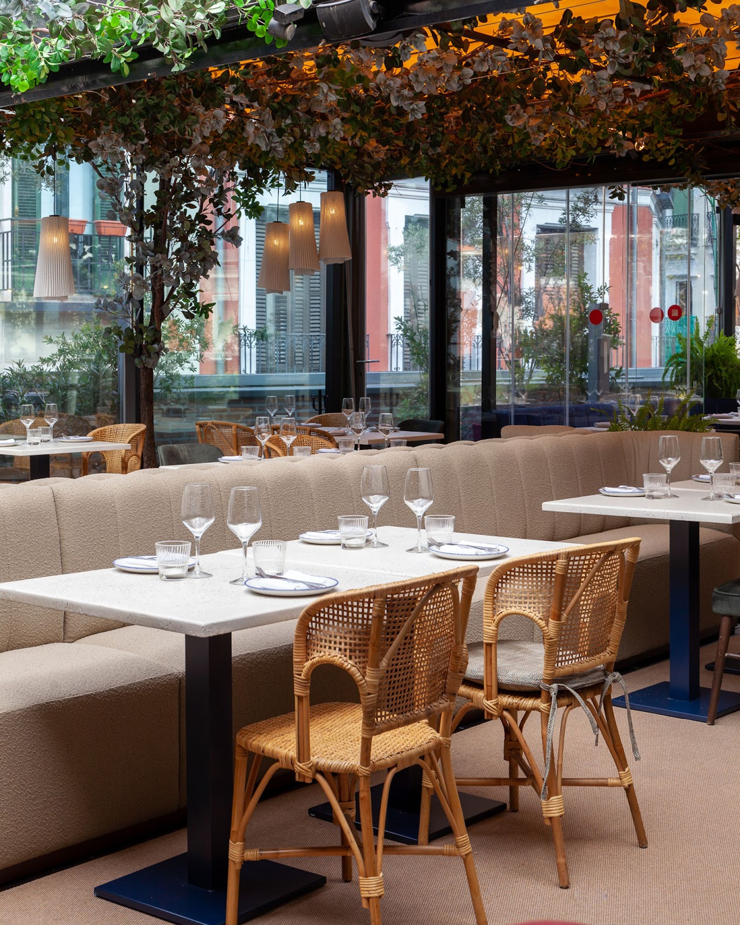 11 Nudos Madrid, Restaurante y bar en terraza en Chueca, Madrid, España.
