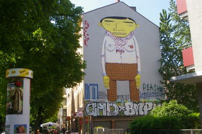Los artistas brasileños Os Gêmeos pintaron el mural Yellow Man en dos mil cinco durante el festival Backjumps, estableciéndolo como elemento permanente en el panorama artístico urbano de Berlín.