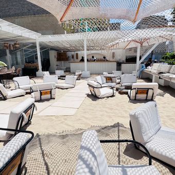 Este establecimiento en azotea presenta un ambiente de playa artificial con arena real y vegetación, ofreciendo a los visitantes una experiencia costera dentro del entorno urbano de Johannesburgo.