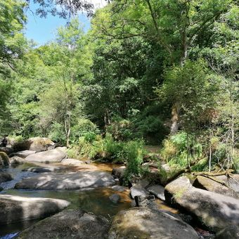 Este sitio geológico presenta formaciones rocosas graníticas masivas esculpidas por milenios de erosión, creando un paisaje espectacular de rocas dispersas a lo largo del lecho del río Gouet.