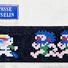 Este mosaico de Invader presenta tres figuras sobre fondo negro. La primera es blanca y azul con detalles rojos y amarillos y las otras dos son azules con verde, blanco y rojo y tienen pinchos como erizos.