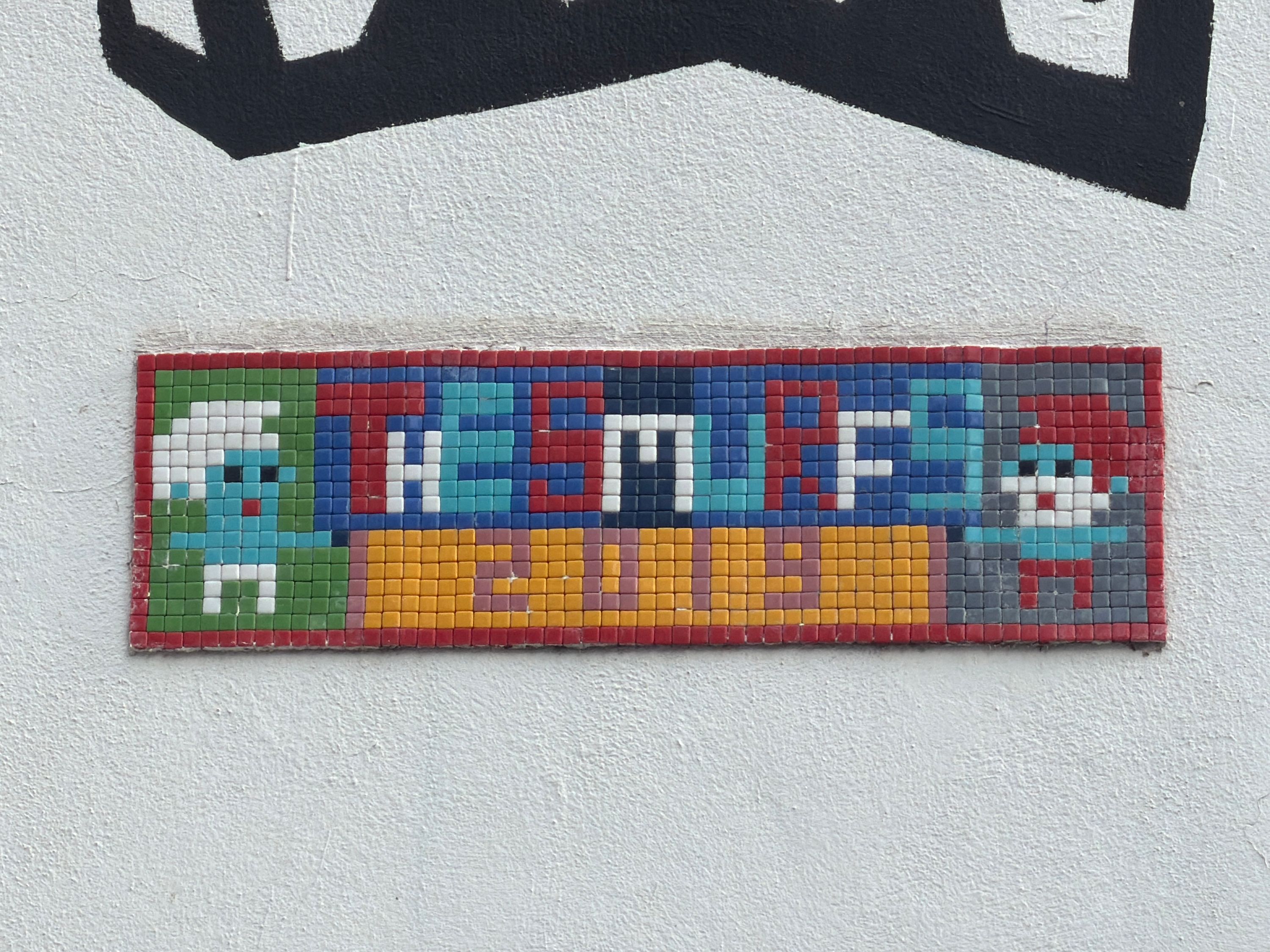 A gauche un schtroumpfs et a droite grand-père schtroumpfs avec inscri au milieu The Smurfs avec en dessou noté 2019