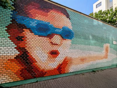 Sitio web: File:Swimmer mosaic on the wall of Radnóti street swimming pool.jpg