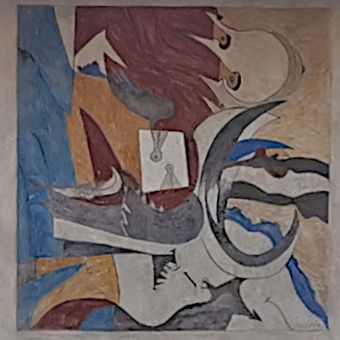 Corrida, painting in the Arcumeggia open-air mural gallery, Casalzuigno, Italy, by Gianni Dova, 1964