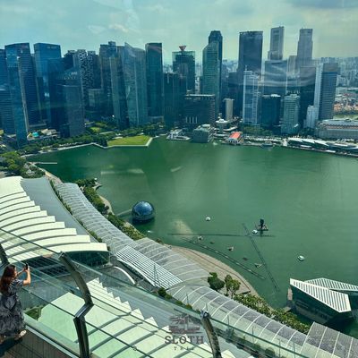 El SkyPark Observation Deck es una plataforma de observación en lo alto del hotel Marina Bay Sands en Singapur que ofrece vistas panorámicas de la ciudad, la bahía y los monumentos cercanos desde gran altura. La plataforma se extiende sobre 300 metros conectando tres torres y cuenta con paneles de vidrio para ver, áreas de descanso, un restaurante y una piscina infinita para huéspedes del hotel.