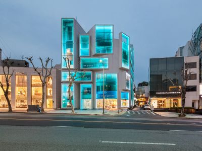 El edificio se sitúa en la popular avenida Apgujung en Gangnam, donde se integra en la atmósfera comercial activa del distrito. Su fachada flexible con vitrinas individuales permite que cada inquilino muestre sus productos de forma personal y contribuya activamente a la apariencia de la calle.