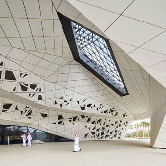El edificio fue diseñado por la reconocida firma de arquitectos Zaha Hadid Architects y parece una única escultura fluida tallada en el paisaje. El diseño incorpora características sostenibles especialmente diseñadas para el clima cálido de Riad.