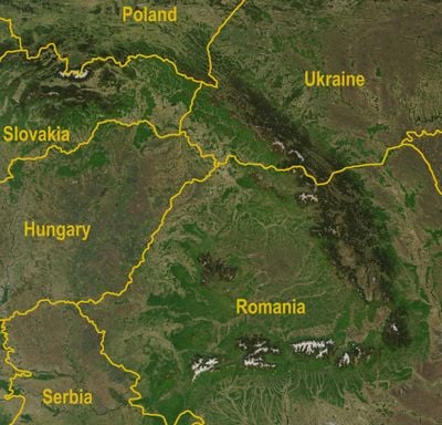 Montes Cárpatos, Cordillera montañosa en Europa Central y Oriental, Rumania y Ucrania.