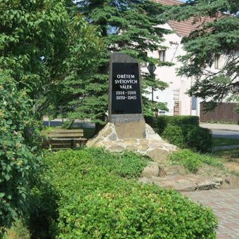 Pomník padlým v 1. a 2. světové válce v Košťanech před školou