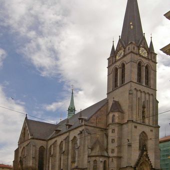 La Iglesia de San Procopio exhibe arcos puntiagudos, bóvedas nervadas y arbotantes característicos de la arquitectura neogótica diseñada por Josef Mocker.