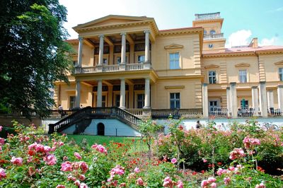 Vila Lanna es una villa con arquitectura de estilo Renacimiento italiano en Bubeneč, con un vestíbulo de entrada magnífico, salones decorados y una terraza orientada al jardín. El edificio tiene 24 habitaciones y funciona como hotel y centro de conferencias en el barrio residencial de Praga.