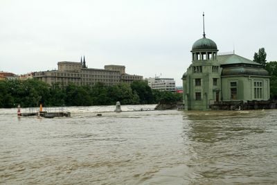 La Esclusa Štvanice controla los niveles de agua con cuatro compuertas sucesivas que cruzan el río Vltava entre los distritos de Holešovice y Ciudad Vieja.
