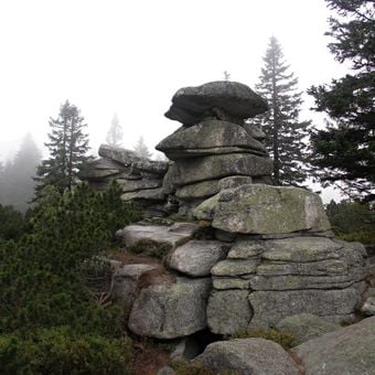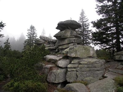 Trojmezná hora se eleva hasta los 1362 metros con formaciones graníticas y bosques dispersos de abetos en su cumbre.