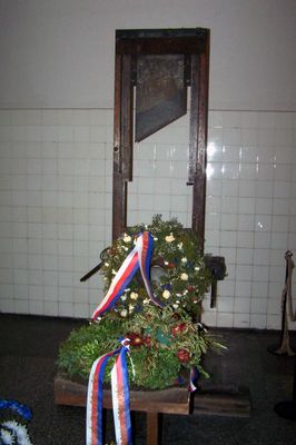 La cámara de ejecución alberga una guillotina original y funciona como espacio conmemorativo dentro de la Prisión de Pankrác en Praga.