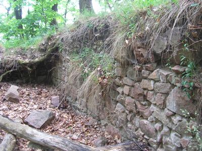 Obřany es una ruina de castillo en una colina cerca de Kanice, con muros de piedra parcialmente conservados y cimientos que muestran el trazado original de la estructura medieval. Los restos permiten a los visitantes reconocer la disposición espacial y el diseño defensivo de esta fortaleza antigua.